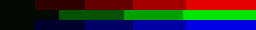 Applying the 24-bit method of dividing a channel into 256 segments represented by 8-bits of data doesn't give good results for an 8-bit palette. Since we've got to work inside 8 bits total per pixel, lets imagine dividing those 8 bits into three parts of 2 bits each for red, blue, and green. The total number of color combinations for each channel is reduced to just 4, and the total three channel palette is reduced to 64 colors! Look how the RGB gradient is destroyed by this...
