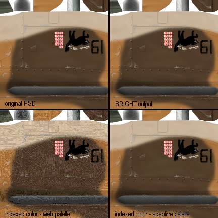 Below are comparisions of the different coversion types on the same area of a skin. These images are 24bit png format to preserve detail.