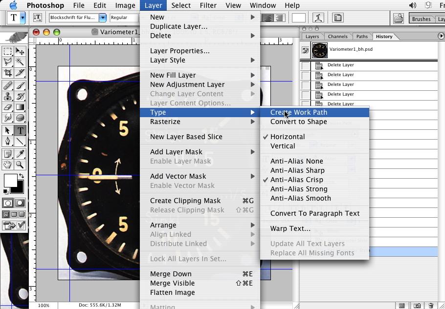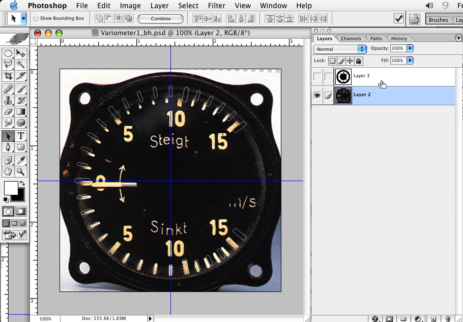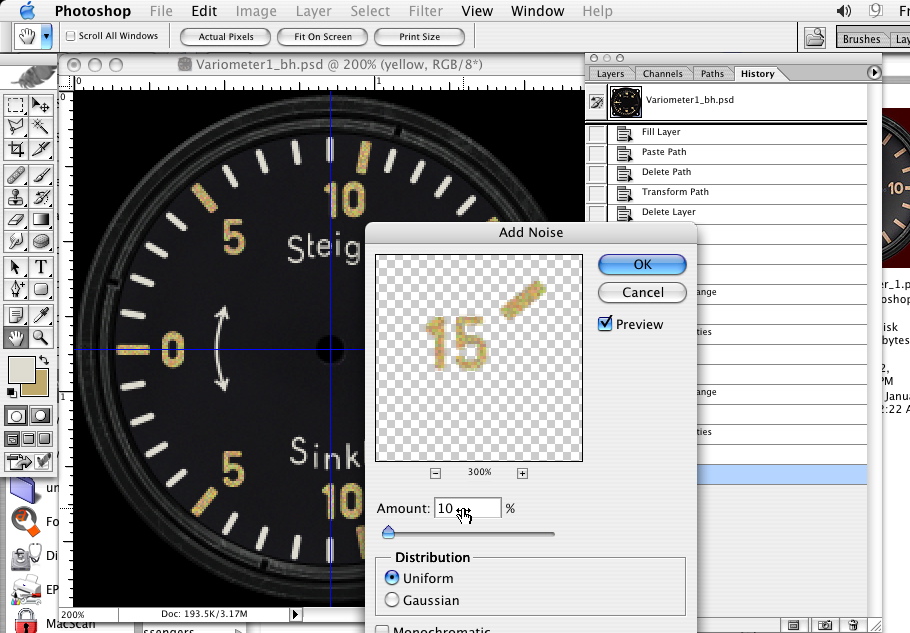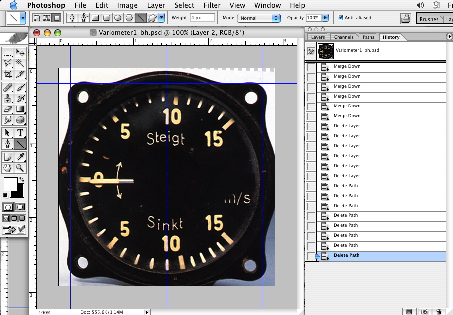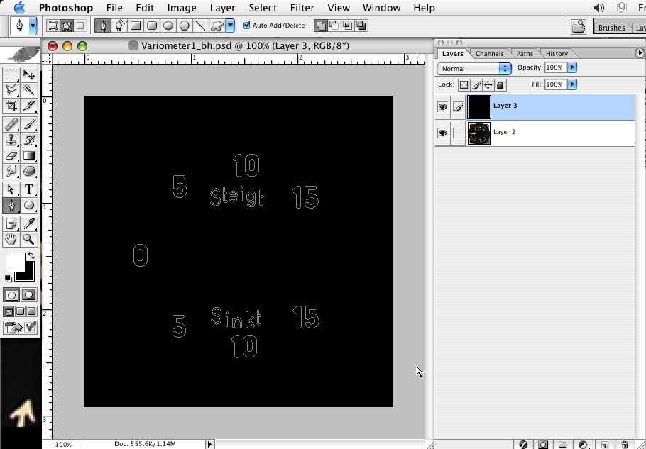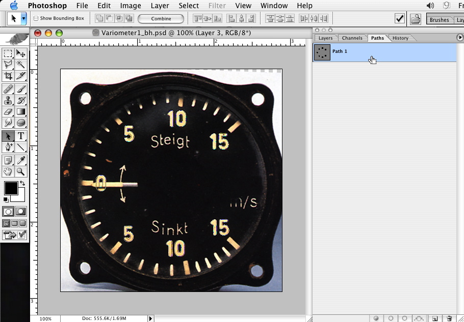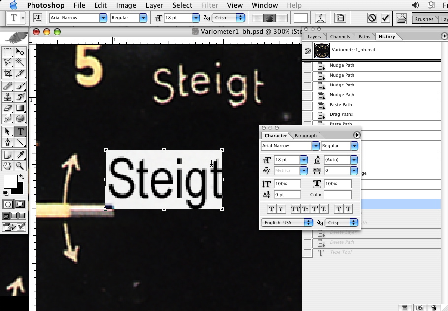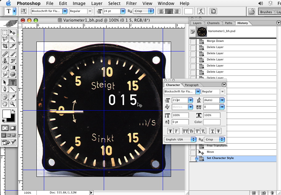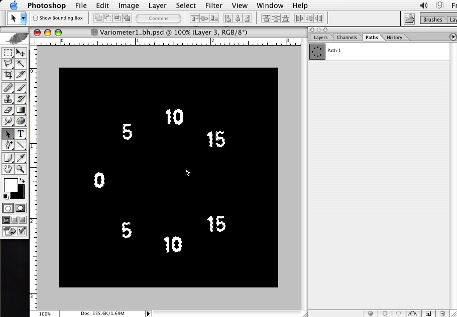 So, now you know a bit about using the pen tool to make vectored paths and have an idea of how to build gauges. Now comes the hard part, duplicating strange and often hand painted numbers and letters found on real aircraft gauges. These unique fonts are very important to the look and feeling of these vintage instruments. If you want an accurate look, you'll just have to do the extra work and give up on available fonts. It doesn't matter how many fonts you have, you never find a font EXACTLY like what you'll see in most WW1 and WW2 aircraft gauges.