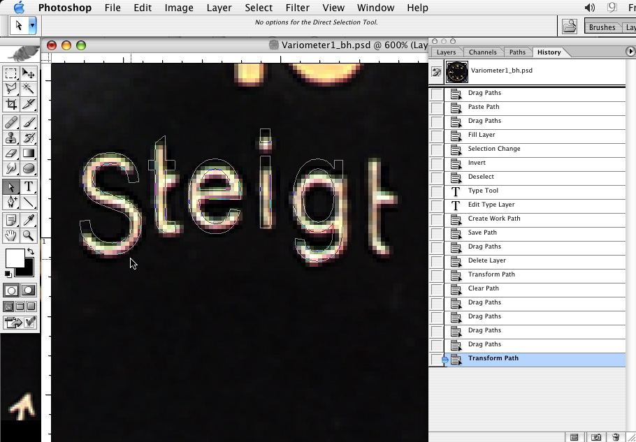 *Note a work path IS NOT permanent, if you've got a work path already on your file and you create another work path, the new path will replace your old path. This can be very bad for you if you've spent a lot of time modifying the path only to lose it :P REMEMBER to save the paths by naming them as you go. You do have history but if you've done this without realizing it your history might have gone past the point of return.