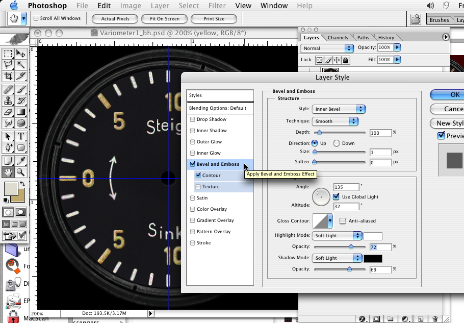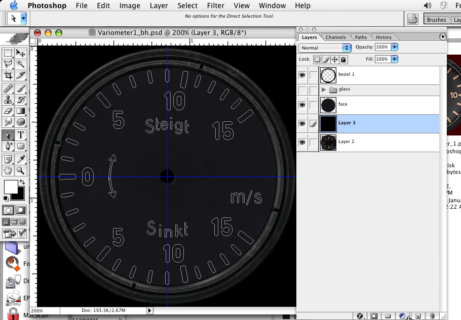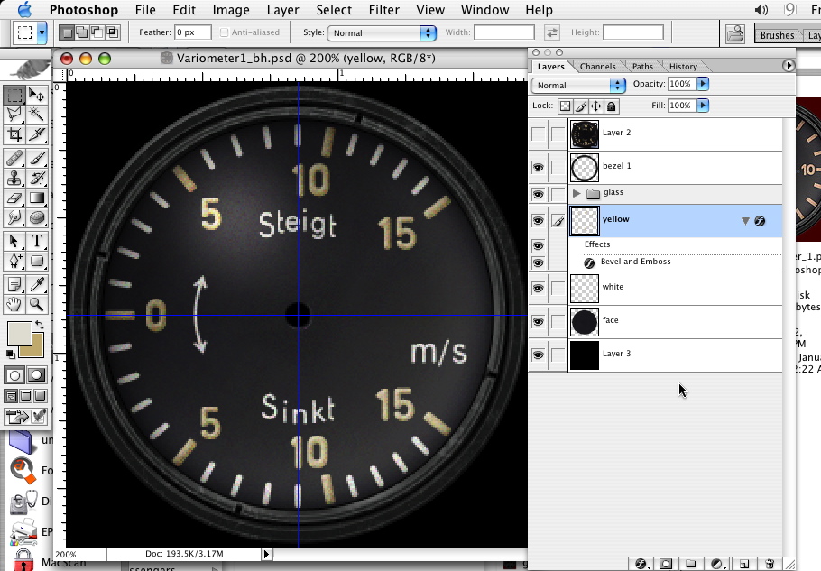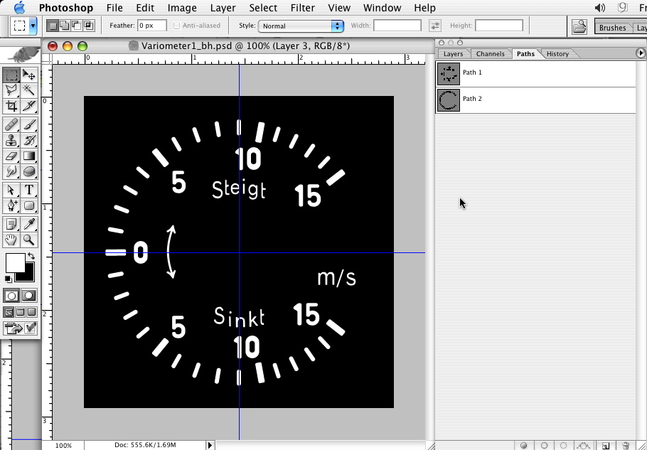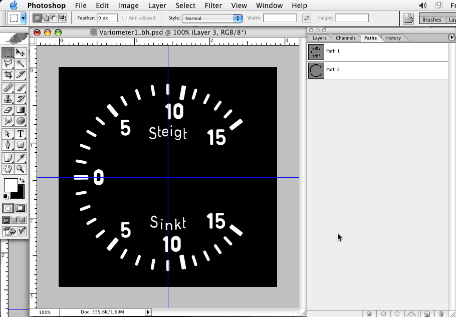 This method, using paths as Adlabs shows in his gauge tutorial has been discussed on the Targetware forum. Several people swear that Illustrator is better for doing this. I feel there are no benefits to using Illustrator in this case other than if you are more comfortable using Illustrator over Photoshop. The end result will need to be in a paint application at least by the time you are ready to render the finished version. I would rather use just the one application from start to finish.