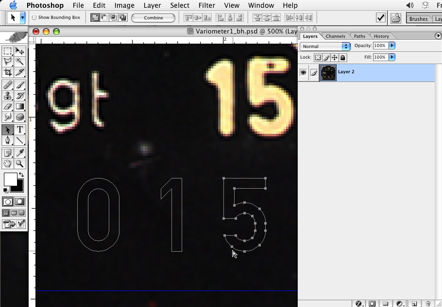 Keep in mind that you may want you letters or numbers a bit thicker than they are in your photograph, you don't want them to disappear. You'll develop a feeling for this as you go.
